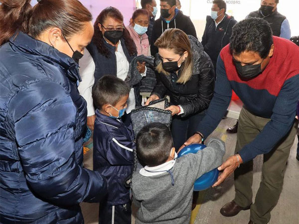 San Pedro Cholula, Puebla.- Con el interés de resguardar la salud e integridad de los grupos vulnerables, la Presidenta Honoraria del DIF Cholula, María De La Barreda, acompañada de la Presidenta Municipal de San Pedro Cholula, Paola Angon, visitó el Jardín de Niños “El Pequeño Sembrador” para continuar con la entrega de prendas abrigadoras para los más pequeños.