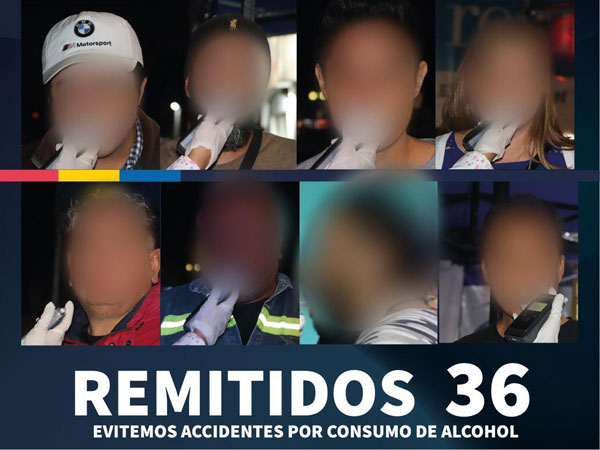 detectadas 36 personas por exceder el límite permitido de alcoholemia, de acuerdo con el Reglamento de Tránsito.