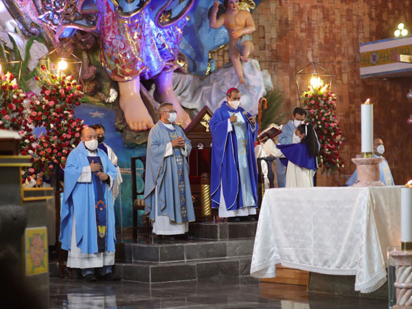 El Presidente Lorenzo Rivera, la Titular del DIF Municipal, Rosy Nava, el Secretario General, Ernesto Cortés y funcionarios del Ayuntamiento; presenciaron la Misa Solemne con la compañía del Arzobispo Domingo Díaz Martínez y el Pbro. Héctor Juárez Tapia.