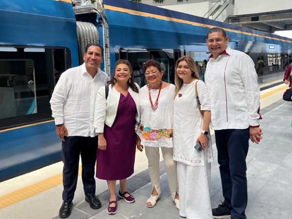 El gobernador electo de Puebla, Alejandro Armenta, se encuentra en la gira por la Península de Yucatán que encabezan el presidente Andrés Manuel López Obrador y la presidenta electa, Claudia Sheinbaum para inaugurar los nuevos vagones del Tren Maya, que al contar con tramos electrificados permitirá que viajen a una velocidad promedio de 160 kilómetros por hora, además incluye espacios como dormitorios y restaurante.