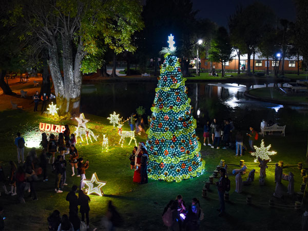 Cholula, Puebla; a 25 de noviembre de 2022.- La navidad está a la vuelta, es por ello que las autoridades de la universidad, así como el Poder Ejecutivo y el Consejo Estudiantil de la Universidad de las Américas Puebla (UDLAP), llevaron a cabo el encendido del árbol de navidad y villas navideñas, evento que no sólo marca el inicio de la última temporada del año, sino que continúa con la tradición que realiza la comunidad UDLAP.