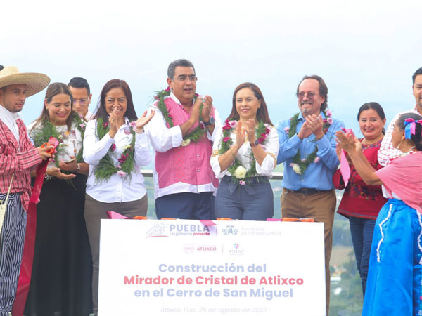 ATLIXCO, Pue. – Para fomentar el turismo y que este municipio cuente con atractivos únicos que fortalezcan la economía y desarrollo, el gobernador Sergio Salomón presidió la inauguración del Mirador de Cristal en el Cerro de San Miguel.