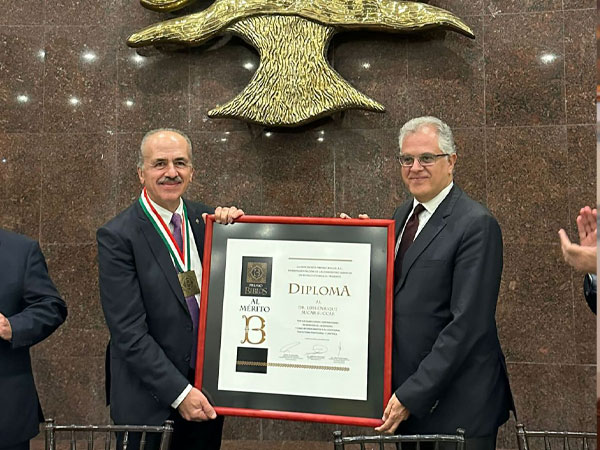 Este año, además del doctor Sucar, también recibió el Premio Biblos el maestro Nahib Chartouni Jalil. El Premio se entregó el pasado jueves 27 de abril en el Centro Libanés de la Ciudad de México. Los galardonados recibieron una medalla y diploma de manos del embajador de la República de Líbano en México, Sami Nmeir, así como del presidente del Consejo Directivo del Centro Libanés, Carlos Letayf Wehbe, y del maestro Alejandro Kuri Pheres, presidente de la Asociación Premio Biblos A.C.