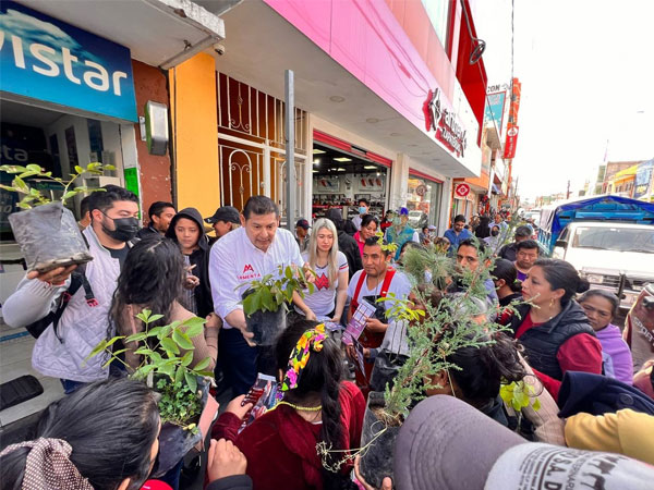 El legislador Armenta recorrió las calles de San Martín Texmelucan donde tuvo contacto con la gente, a quien se le entregaba nogales y pinos para hacer el compromiso como guardianes de la Madre Tierra en toda la entidad.