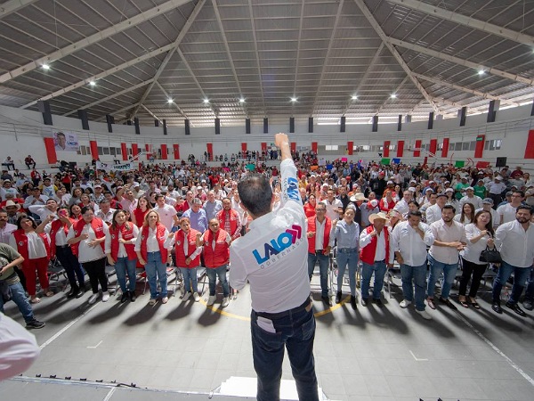 Por la tarde en el mitin organizado por el PRI, uno de los grandes partidos que le acobija, afirmó Lalo Rivera a las y los campesinos, “Quiero que les quede claro que este gobierno no los va a abandonar”, porque con ‘Peso a peso’ habrá maquinaria, fertilizante y semillas, y para los ganaderos para las vacunas de los animales.