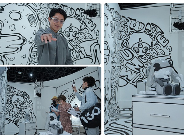 Cholula, Puebla, a 28 de marzo de 2024.- La Luz de la Nevera, galería de arte ubicada en la Universidad de las Américas Puebla (UDLAP), albergó la exposición individual de Alexis Manchia “siempre blanco y negro en mi cuaderno” y la experiencia inmersiva de Shin-Yuu Benítez titulada “De minotauro yendo a mariposa”.