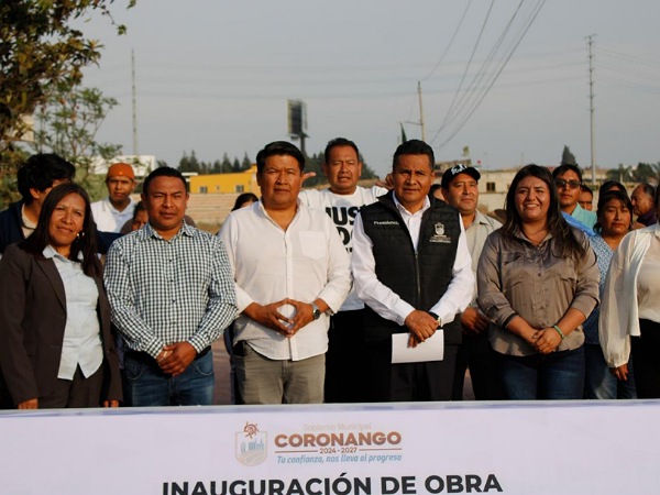 El presidente municipal de Coronango inauguró el adoquinamiento de la calle Domingo Arenas la cual tuvo un costo de 2 millones 231 mil 319 pesos y consta de mil 905 metros cuadrados de adoquín, 89.4 metros cuadrados de banquetas, 635 metros lineales de guarniciones y pintura