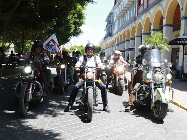 Alejandro Armenta recorrió las calles de Tehuacán acompañado de los bikers, para acudir al Jardín Guadalupe y al Parque Juárez a hacer entrega de nogales, además de promover la campaña de esterilización a perros y gatos.