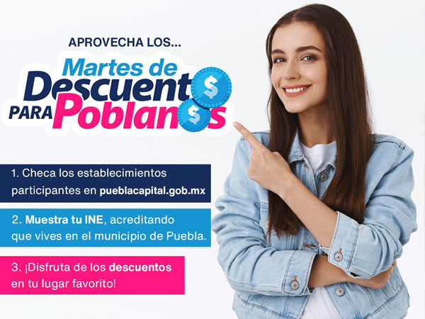 El programa Martes de Descuentos para Poblanos, que Eduardo Rivera Pérez, Presidente Municipal, lanzó en abril de 2022, ha cumplido un año de ser parte fundamental en el crecimiento económico de la ciudad, mismo que ha superado mil 900 negocios afiliados los cuales otorgan descuentos y/o promociones el día con menor actividad comercial.