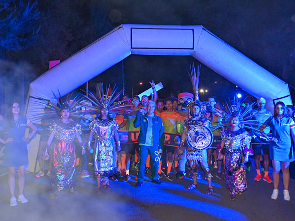 • Corredores y familias disfrutaron de un festival de música, pintura, luces, aditamentos neón y una vista nocturna de la institución educativa.