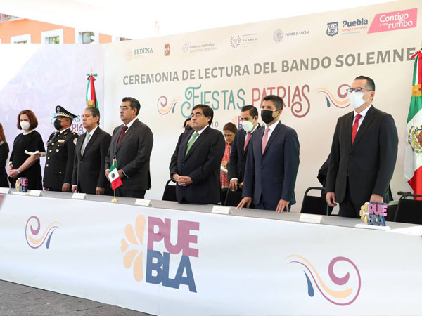 Con la colocación y lectura del Bando Solemne alusivo a las Fiestas Patrias 2022, autoridades de los tres poderes del Estado, encabezadas por Miguel Barbosa Huerta, Gobernador de Puebla, y Eduardo Rivera Pérez Presidente Municipal, marcaron el inicio de las celebraciones conmemorativas por el 212 Aniversario de la Independencia de México que se realizarán durante el mes de septiembre.
