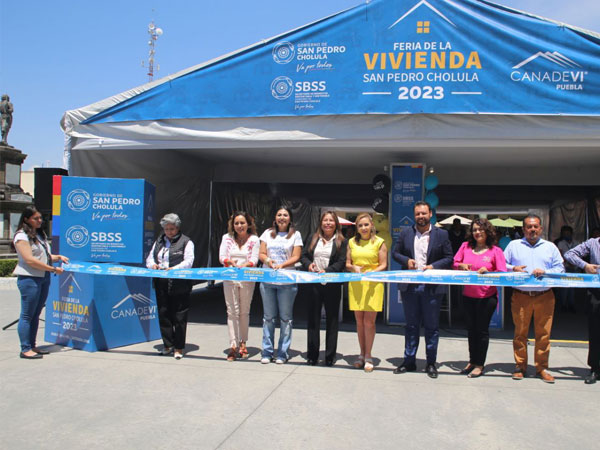 San Pedro Cholula, Puebla.- El Gobierno que encabeza la Presidenta Municipal Paola Angon continúa trabajando y sumando esfuerzos en beneficio de las familias cholultecas, por lo que este viernes inauguró la Feria de la Vivienda 2023 que se realiza a través de la Secretaría de Bienestar Sustentable y Sostenible, en coordinación con Cámara Nacional de la Industria de Desarrollo y Promoción de Vivienda (CANADEVI) y que se está llevando a cabo durante los días 28, 29 y 30 de abril.
