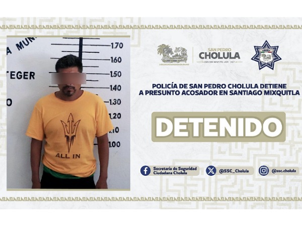 Policía de San Pedro Cholula detiene a presunto acosador en Santiago Mixquitla