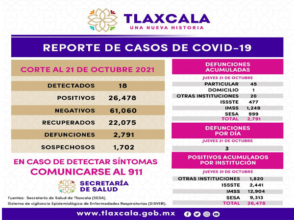 Covid-19 y tres defunciones el 21 de octubre de 2021.