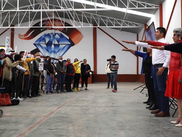 Aquí Lalo Rivera también escuchó a Vicky Martínez, representante de las artesanas que trabajan con ocoxal, creando piezas únicas como llaveros, aretes, medallas, bolsas, entre otros artículos, a quien le interesó el impulso a este sector como se hizo en Puebla capital, al igual que el contar con créditos que les permita hacer crecer su emprendimiento.