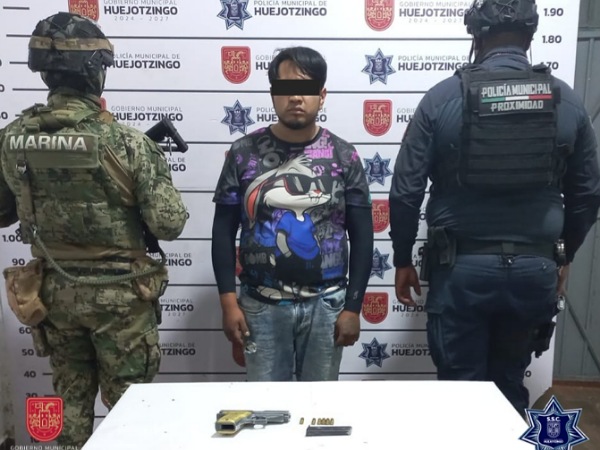 Elementos de la Policía Municipal de Huejotzingo, en coordinación con personal de Infantería de Marina, detuvieron a un hombre de 28 años identificado como Juan Manuel N., tras sorprenderlo con un arma de fuego durante un recorrido de vigilancia en la Junta Auxiliar de San Luis Coyotzingo.